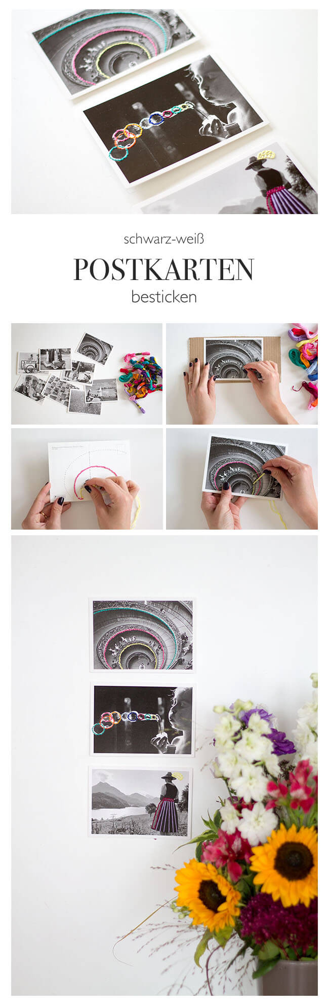 These postcards were part of a great black and white calendar from 2015, which of course is still in the drawer because the postcards are so beautiful. However, as part of my clean-up campaign, I decided on my favorite postcards, separated them out ALTHOUGH the calendar had super nice slogans printed over them, and some of them were embroidered in a beautiful color.