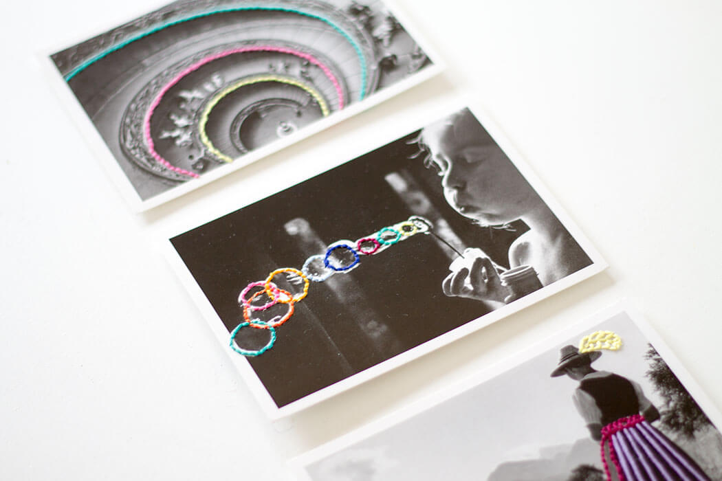 These postcards were part of a great black and white calendar from 2015, which of course is still in the drawer because the postcards are so beautiful. However, as part of my clean-up campaign, I decided on my favorite postcards, separated them out ALTHOUGH the calendar had super nice slogans printed over them, and some of them were embroidered in a beautiful color.